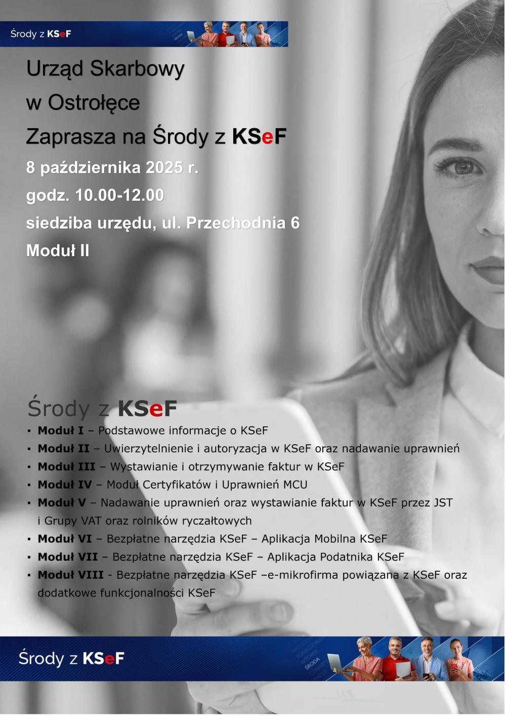 Środy z KSeF to bezpośrednia kontynuacja letnich spotkań informacyjnych na temat KSeF prowadzonych w izbach administracji skarbowej i w urzędach skarbowych na przełomie lipca i sierpnia 2025 r., w których udział wzięło ponad 60 tys. przedsiębiorców.